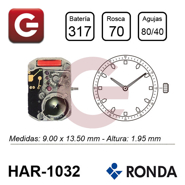 1 Movimiento Harley - Ronda Calibre 1032 AIG2En envase individualPrecisión: ±20 sec. mes Lineas: 3¾ x 6''' Descargar ficha técnica «click aqui»..
