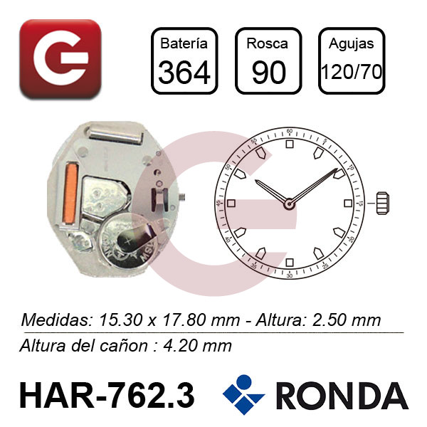 1 Movimiento Harley - Ronda Calibre 762En envase individualPrecisión: ±20 sec. mes Lineas: 6¾ x 8''' Descargar ficha técnica «click aqui»..