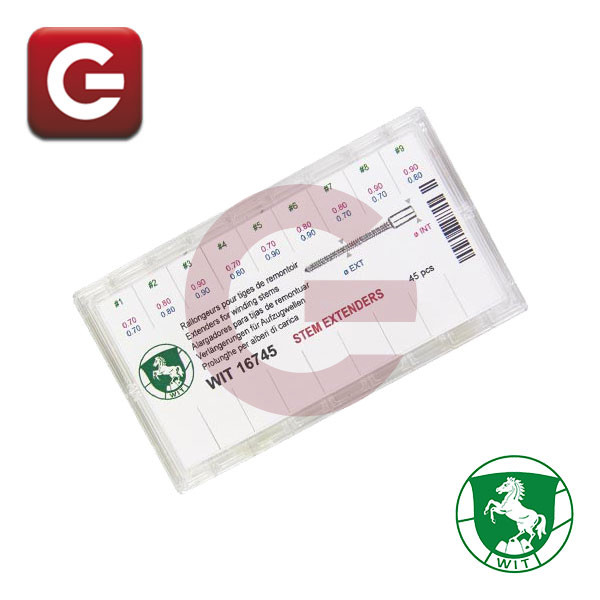 Surtido de 60 prolongadores de tija (misma rosca y rosca distinta). 5 Prolongadores iguales de cada medida.En caja de plástico con departamentos. Tabla de medidas en la tapa de la caja...