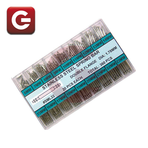 Surtido de 360 pasadores de doble tope. De acero con 2 pivotes móviles. En estuche de plástico con departamentos. 20 piezas por medida. Diámetro: 1,78 mm. Medidas:6 ● 7 ● 8 ● 9 ● 10 ● 11 ● 12 ● 13 ● 14 ● 15 ● 16 ● 17 ● 18 ● 19 ● 20 ● 21 ● 22 ● 23 mm...