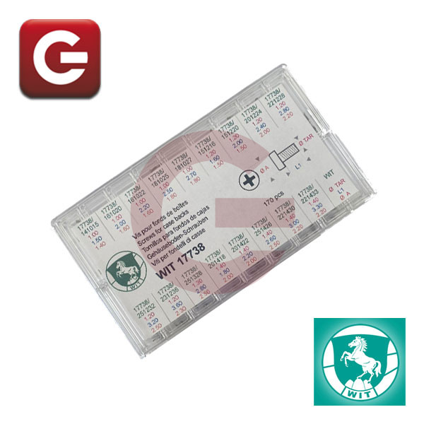 Surtidos BERGEON - 10.013Surtido de Tornillos de Rochete a derechaTemplados, cabeza pulida, para relojes de pulsera y bolsilloEl sobre contiene: 100 piezas..