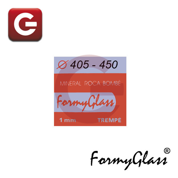 Cristal mineral bombé FORMYGLASS. Por 5 décimas. 1 Sobre con un cristal mineral bombé calibrado (Diámetro*)Grosor: 1,00 mm / Diámetros: Ø 405 al 450Todos los modelos se venden calibrados y en sobre.Pedir por su medida en centésimas ( tres cifras )*Insertar el diámetro en el recuadro - Medida Cristal -..