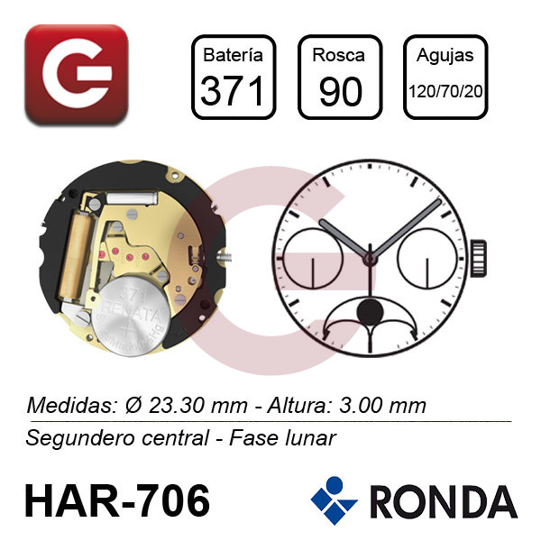 1 Movimiento Harley - Ronda Calibre 703En envase individualPrecisión: ±20 sec. mes Lineas: 10½''' Descargar ficha técnica «click aqui»..
