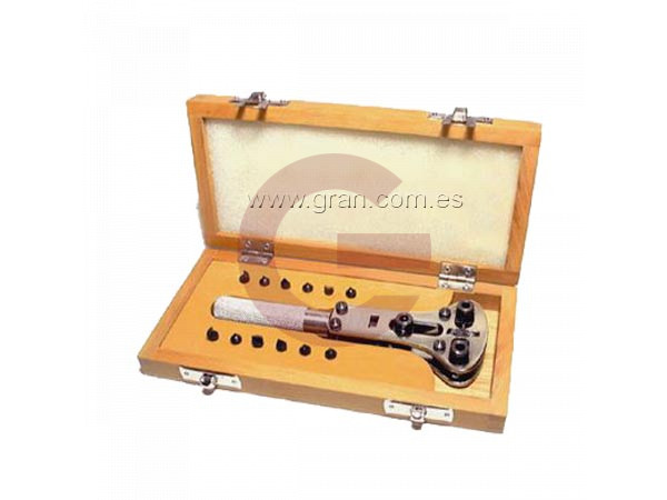 Para abrir y cerrar fondos a rosca de relojes tipo RLX. Volante + 6 tases:Ø: 18,5 - 20,2 - 22,5 - 26,5 - 28,3 - 29,5 mm...