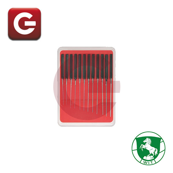 Juego 12 escariadores para pivotes WIT 02784Con mango. Diámetros de 0,05 a 0,55 mm...