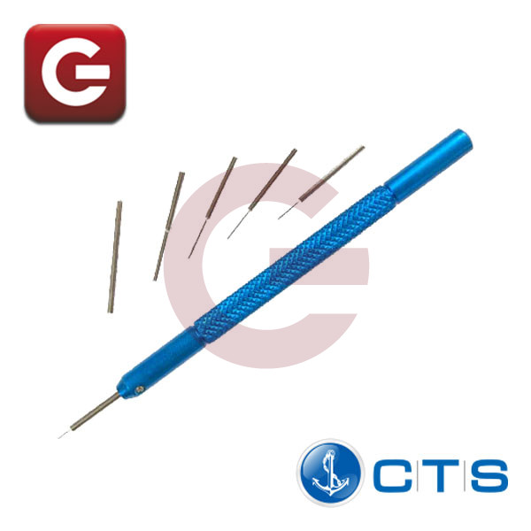 Para sacar y colocar los pasadores de armis.Punzón de aluminio con mango grafilado y punta intercambiableCon 6 clavijas Ø: 0,40 - 0,60 - 0,80 - 1,00 - 1,50 - 2,00 mm En funda plástica...